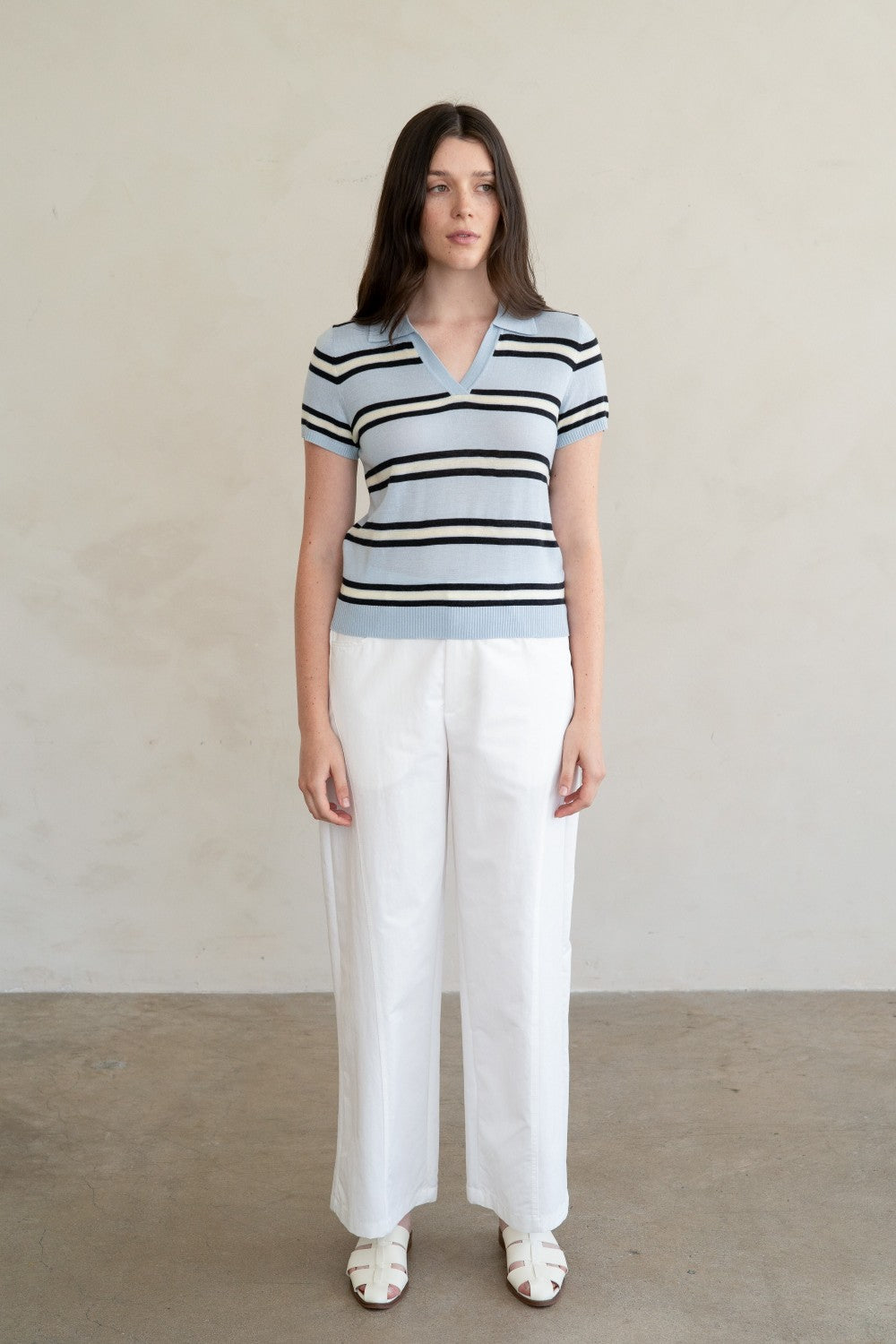 TOP TEJIDO A RAYAS CON JOHNNY COLLAR