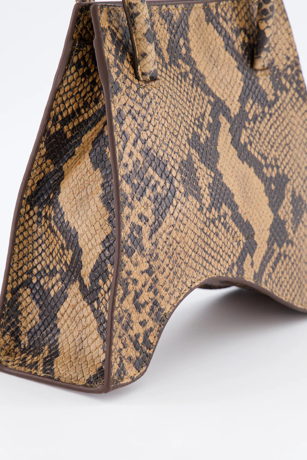 Confeccionado en piel bovina con grabado de cobra y un acabado mate.